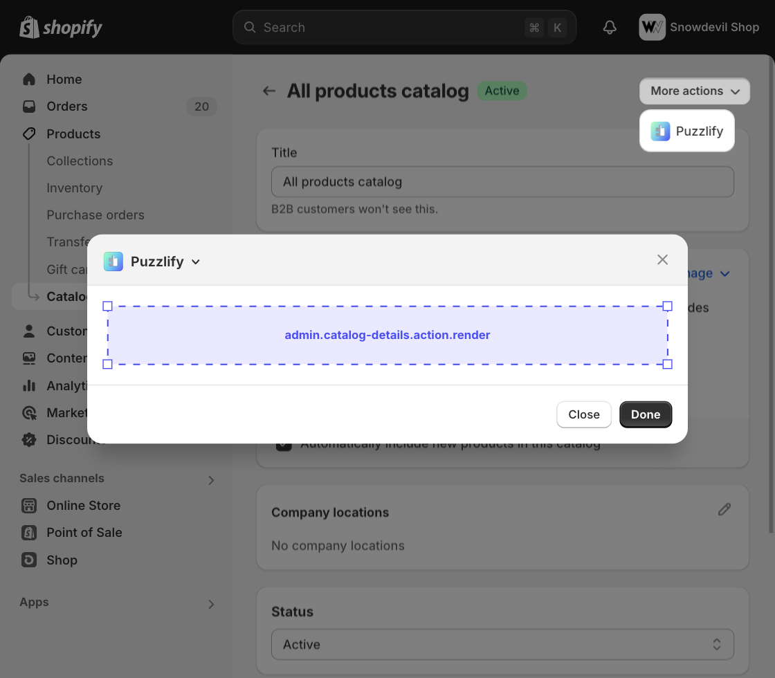 Product configuration extensions appear on the product details and product variant details pages, and allow configuration of product bundles. Learn more about product configuration.