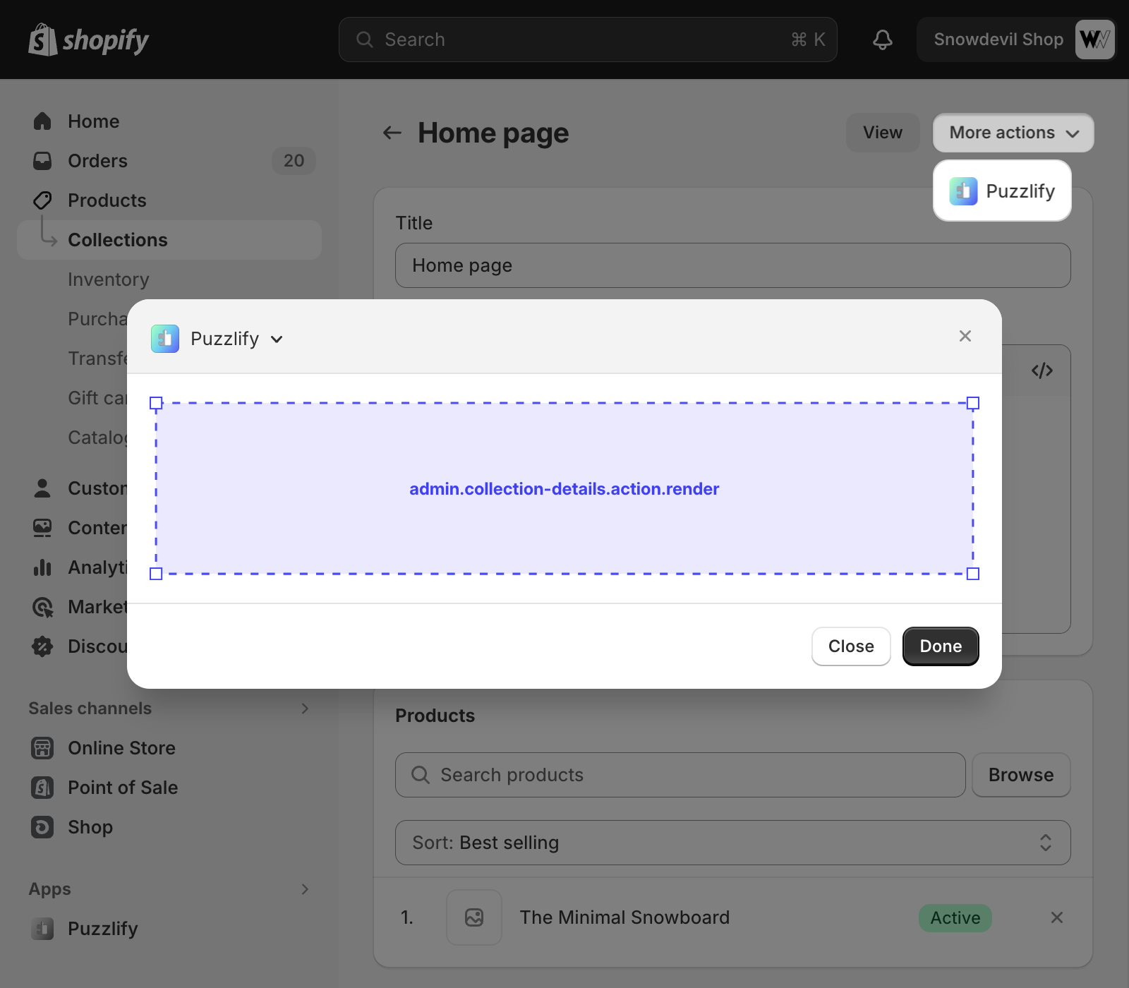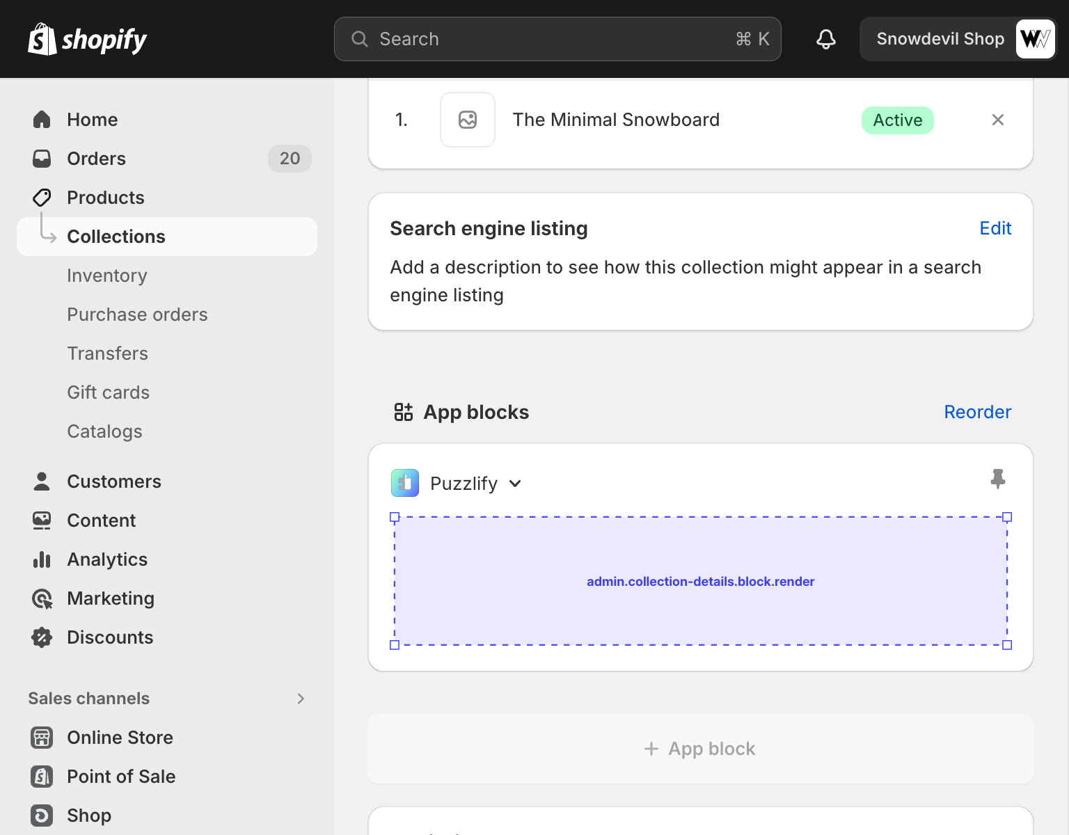 This page shows information about a single collection. The admin.collection-details.block.render target is available on this page.