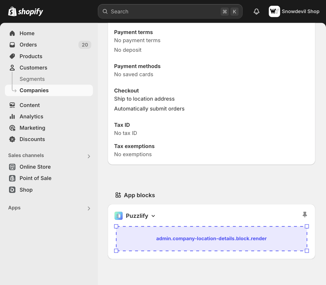 Admin block extensions appear on resource detail pages throughout the admin. Learn more about admin blocks.