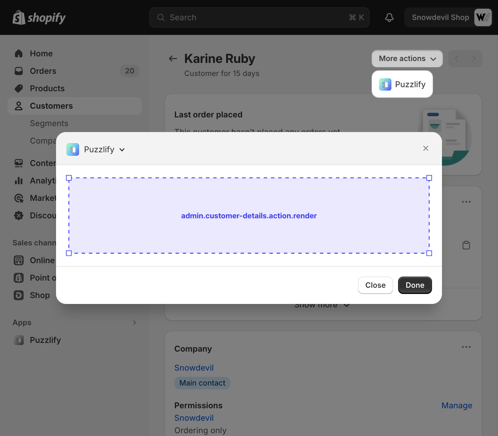 This page shows information about a single customer. The admin.customer-details.action.render target is available on this page.