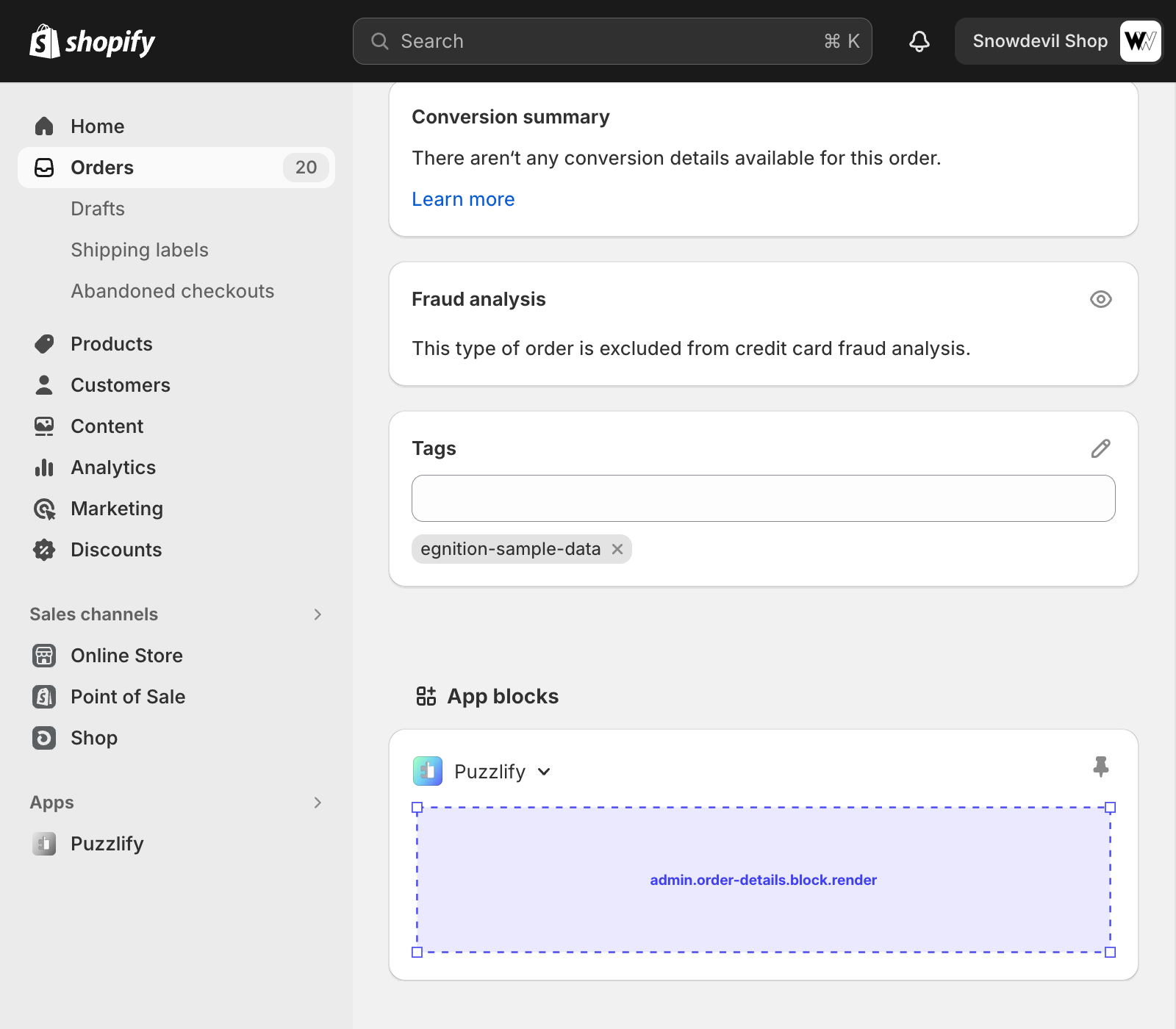 This page shows information about a single order. The admin.order-details.block.render target is available on this page.