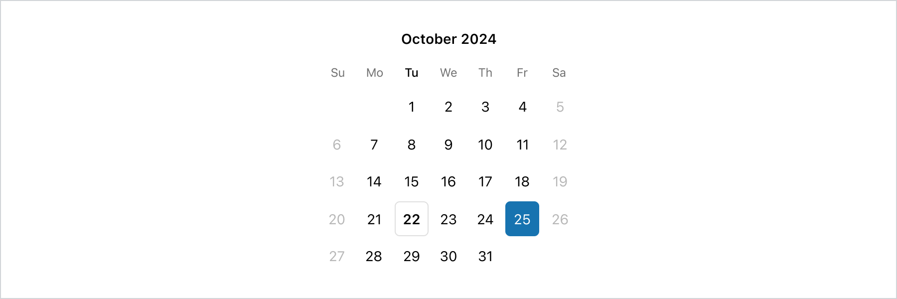 Default [uncontrolled](https://reactjs.org/docs/forms.html#controlled-components) year and month to display. Ignored when year/month navigation is controlled.