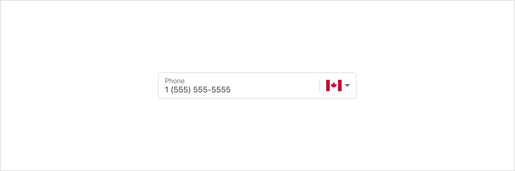 A PhoneField is an input field that merchants can type into optimized for phone numbers with a country code base auto-formatting. The country code is required for the initial render of the field but it can be overriden later by the user either by selecting a country in the country selection dropdown or by manually editing the country phone code directly in the text field.