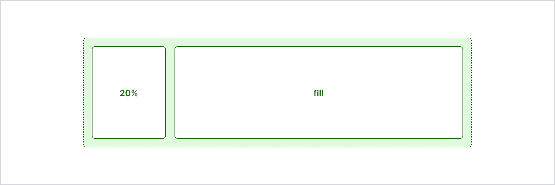 `fill`: fills the remaining available space. When multiple elements are set to `fill`, the remaining space is shared equally.