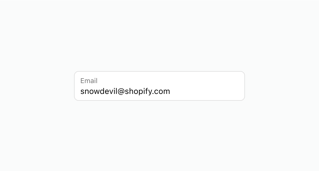 <s-email-field label="Email" defaultValue="snowdevil@shopify.com"></s-email-field>