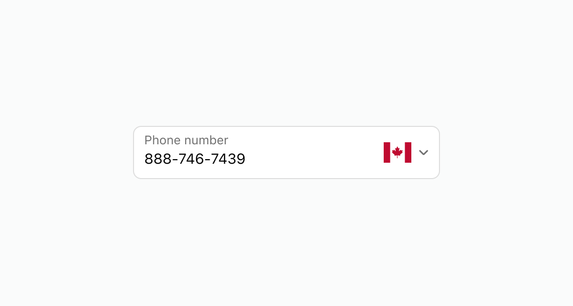 <s-phone-field label="Phone number" defaultValue="888-746-7439"> </s-phone-field>