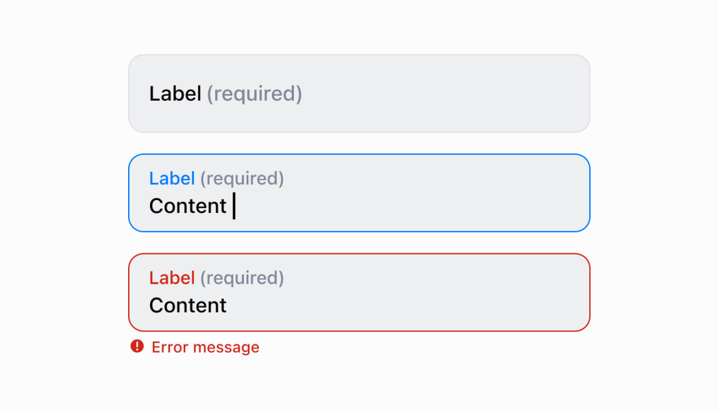 * **Indicate required fields clearly:** When a text field is required for form submission, use the `required` property and display a "Required" indicator. Implement validation logic in your `onChange` callback to check empty values and display errors.