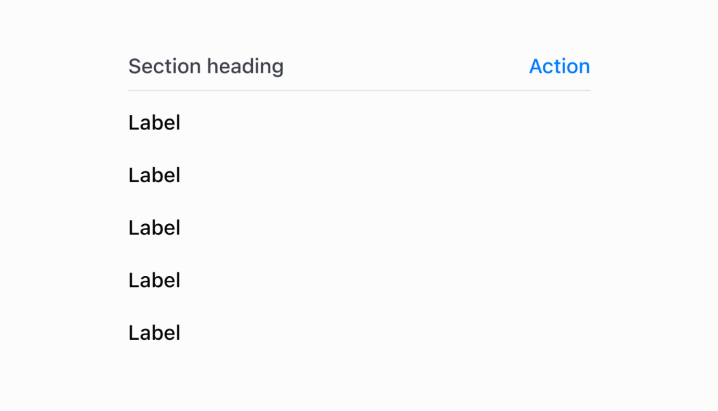 The `Section` component groups related content into clearly-defined thematic areas. Sections provide visual boundaries and optional actions to organize content within POS interfaces.