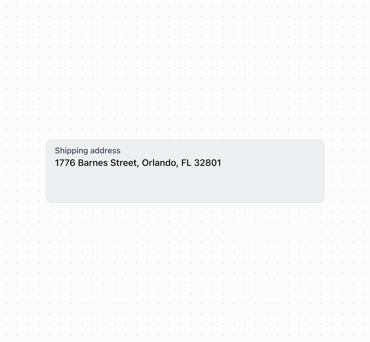 <s-text-area label="Shipping address" value="1776 Barnes Street, Orlando, FL 32801" />