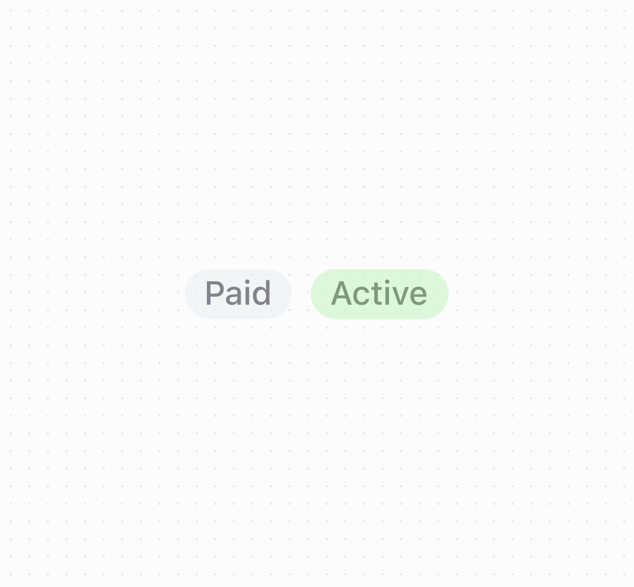 <s-stack gap="small" direction="inline" justifyContent="center"> <s-badge tone="neutral">Paid</s-badge> <s-badge tone="success">Active</s-badge> </s-stack>
